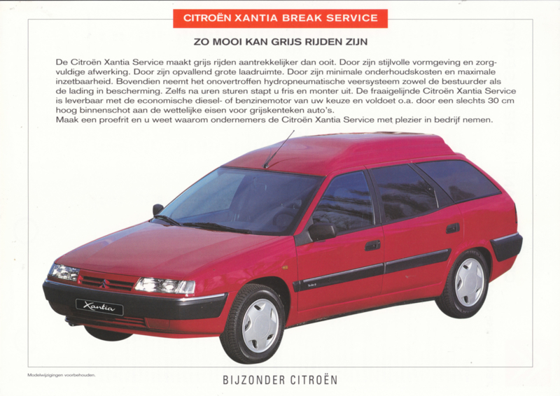 Xantia Break Service leaflet, 2 pages, 04/1997, Dutch language